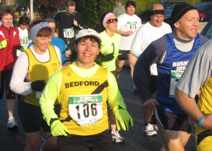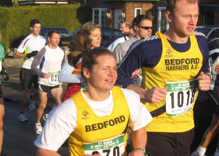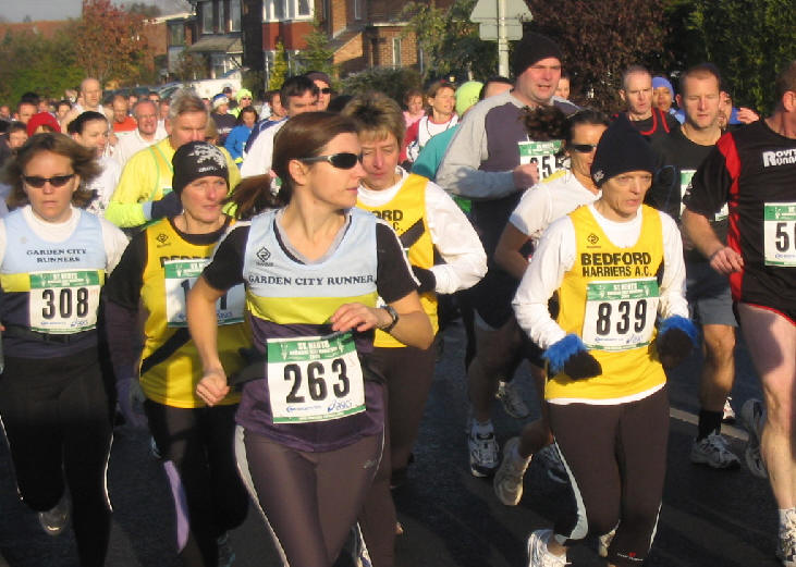 'A seriously fresh November day as yours truly awaited a lift to St Neots. Not long to wait as yours truly was transported to St Neots by Steve Gaunt and Lesley Barnes. Thanks guys. Why St Neots? A little matter of the St Neots Half Marathon and the Club Half Marathon Championship. Lots of Harriers in evidence as start time approached a little after 10. A loud hooter as over 1000 left St Neots behind to address a demanding 13.1 miles. Some nice images at the start as yours truly captured the action on camera and again at the finish. Morgan set a hot pace and duly secured first Harrier on the day in 77 ish, with Kevin Willett second in 81 and Richard Piron third in 84. Not too sure about ladies positions but they did secure the ladies team prize in the guise of Lesley Barnes, Donna and Veronica. Good to see all Harriers go the distance bar two. Yours truly and the majoity welcomed a hot drink. A nice journey back to Bedford. Well done to all who went the distance and supported Harriers on the day and to Steve and Lesley for their lift to and from St Neots. Phew! '