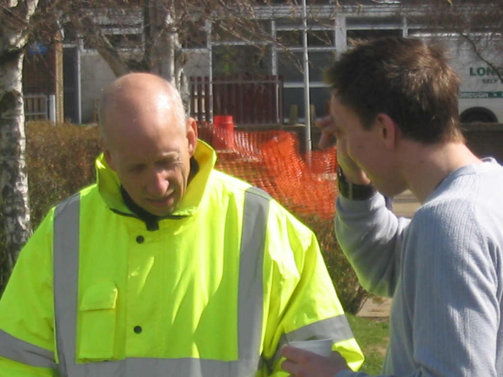 Crane is busy doing his bit before kick-off at 10 a.m. Still more to do as