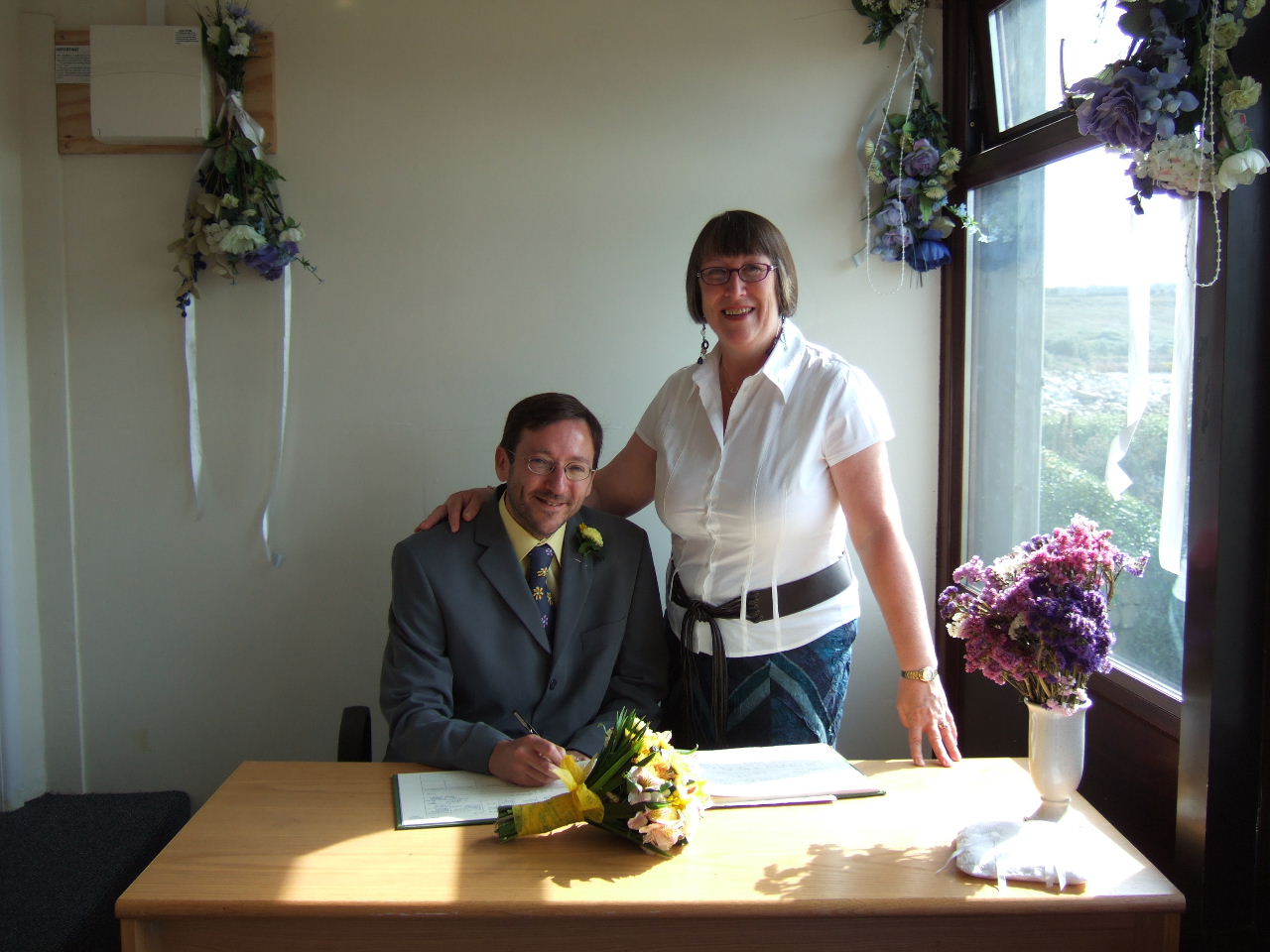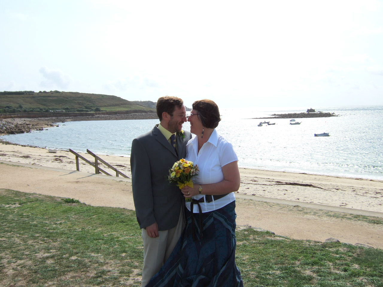 Many congratulations to Bedford Harriers honorary member Tony Barnes and former Bedford Harriers Committee member Lesley Coutts who were married on the Scilly Isles in September. In a very romantic setting, Tony and Lesley were married in a registry office which overlooked a beach. Apart from Lesley's two sons (who were told a week before the event) no-one knew it was taking place - the witnesses were two young ladies who were dragged out of the local Town Hall for the occasion.