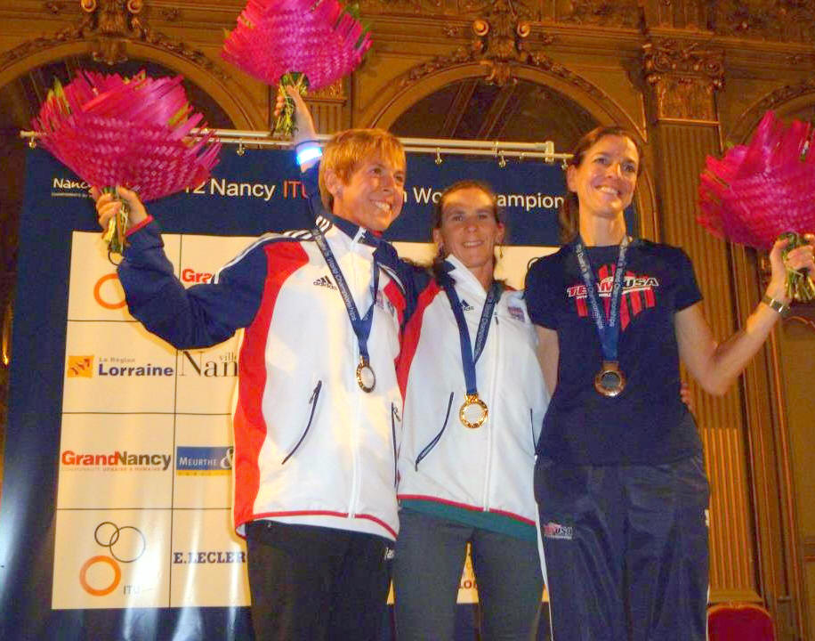 Gill with her Gold Medal from the ITU world duathlon championships