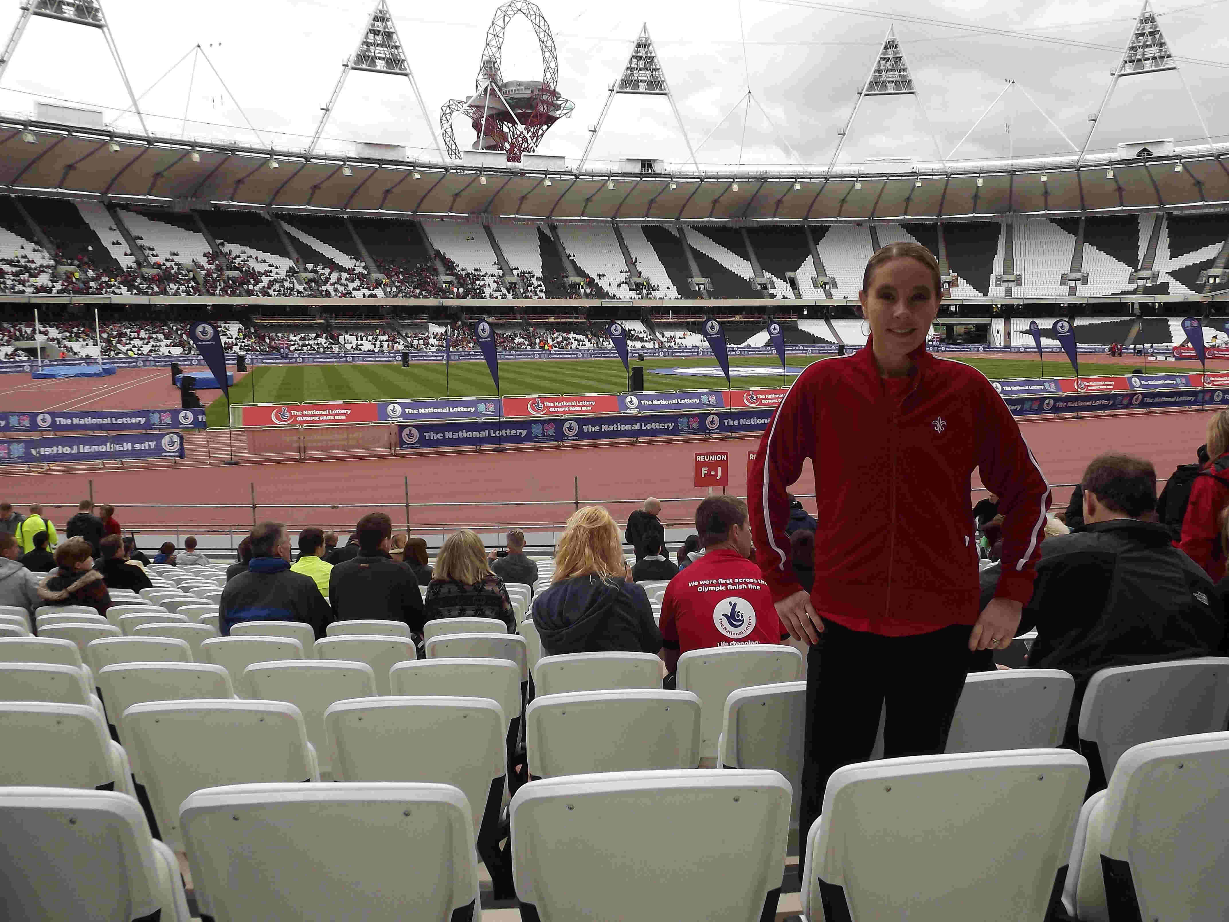 It was an amazing experience to run around the Olympic Park, then to run into the stadium to sprint the last 300 metres and be cheered home by the crowd - it made it an easy 5 miles. I was really proud to represent the Harriers and have a chance to compete for myself and the club. Entertainment was great with Flawless dance group and Escala the violinists there! Whilst Nell McAndrew did beat me to win my age category, I came 9th in my category and beat Sporty Spice, and had a PB to make my day extra special!!!