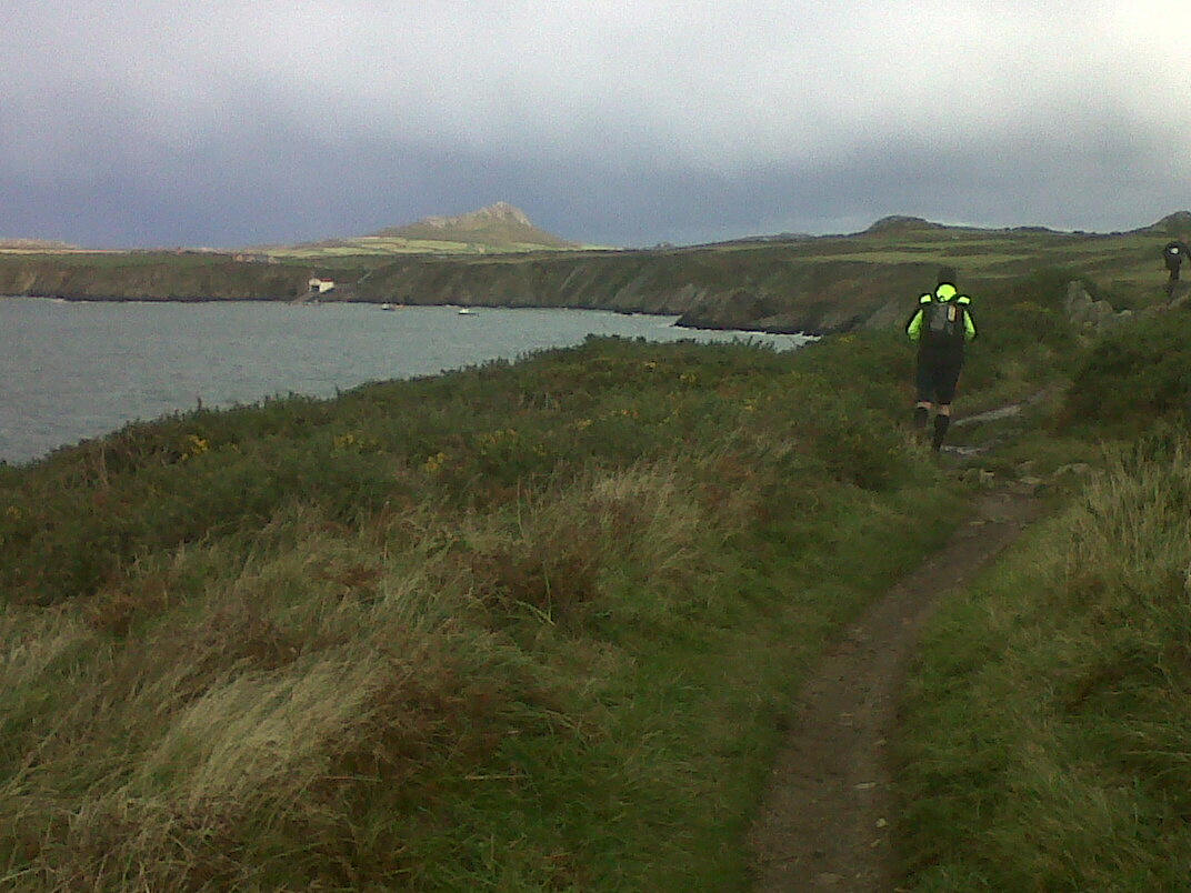 Pembrokeshire Coast Challenge, 2-4 November 2012 My first ever multi-day event. A marathon distance (give or take the odd mile or two, mainly give) each day for 3 days . As well as discovering new limits, I was raising much needed funds for cancer charities. Day 1 : Dale – Newgale: At the morning briefing we had a quick crash course in navigation and safety i.e. ‘keep sea to your left and keep away from the edge of the cliffs please we don’t want to lose our dibbers’ . Apparently today was the ‘easier day’. In fact it was really muddy underfoot, which would be a theme for the 3 days, so going was much slower than expected (not that I expected to be quick!). Conditions overhead were pretty good with plenty of sunshine, with a stiff coastal breeze to keep us from overheating. Everything was going fine until 22 miles and the small group I had just caught up with headed on to the beach believing the path to continue along it. An impromptu spot of wading and scrambling followed for which we were ill-equipped. It was nice to have the cool waters of the celtic sea soothe the tired legs, but I couldn’t help wondering if the effort of this detour was going to come back to haunt me on day 3