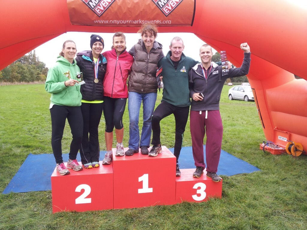 We arrived in a field in Althorp - a couple of marquees and an inflatable finish line. I soon learned that there were other events on - a 5 and 10k run and a sprint duathlon (5 run, 20 bike and 5 run I think) as well as our standard (10 run, 40 bike and 5 run) We collected our race numbers, placed stickers on bikes and helmets, racked our bikes and got a cuppa. Not as simple as a run! All to soon we were off on the run, it was a scenic two lap mixed terrain race starting in a long slow hill, not so much fun on the second lap but a reasonable 53 mins for me. Then into transition, telling myself to not touch my bike before putting the helmet on, remembering gloves etc, all this isn't that easy when you've just done a run! The bike part was again a two lap course on open roads - although not terribly hilly it was undulating and my legs were weary. The lack of bike training was starting to show. At the end of the lap there was a huge downhill which took some guts to go at full pelt - really exhilarating! On the second lap I noticed a motorbike behind me and began to realise that perhaps I was the last rider on the course - eek. Coming back into transition I was focused on the final 5k and threw my running shoes on and took off on the now familiar course...but whose legs were these? The top half of my body was in running motion but my legs appeared to belong to someone else... I looked down, yes they were there...and they appeared to be going in a forward motion but felt detached from my body. Dismayed I continued telling myself it would soon be over. As the run progressed my legs came back to me and I noticed a runner in the distance, I focused on him and even managed to overtake in the last k. Phew - I wasn't last after all! I ran into the finish to big cheers from fellow Harriers who had all finished and were probably on their second cuppa! Thanks guys, it really helped. Got a nice medal and a cool hat! We stayed for the awards and It was great to see quite a few Harriers up on the podium! Official times - 10k run 53.11 Bike 40k - 1.44 Run 5k 26.50 Overall 3.07 Sarah