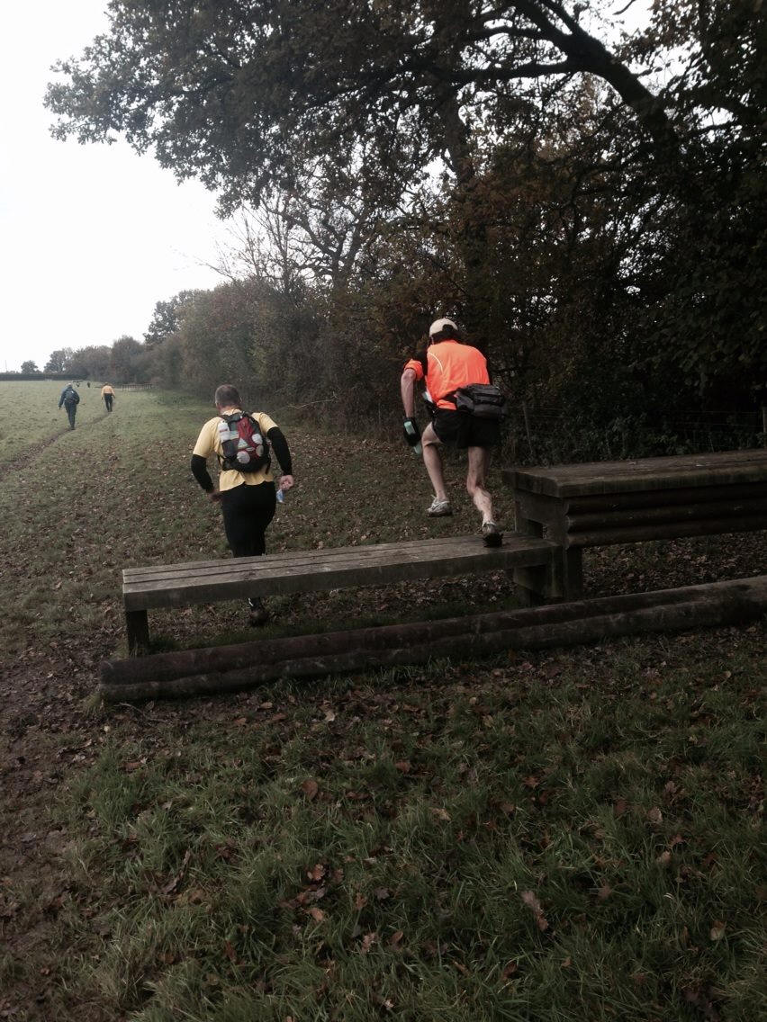 Noel Jones and I left for Kent at 6am and arrived in time to start running at 8.45. Id read a little about Gatliffe and knew that this was its 30th year and that they changed the route every year too, also that the area was blessed with hills and potentially mud. It wasn't about speed, but it was certainly all about endurance. It soon became apparent that there were hills, lots of hills, we tackled them at first by trying to run the gentler ones and walk the steep ones which worked well. Most of the run was off road and checkpoints were approximately every 10k. The scenery was distracting with stunning winter sunshine and autumn colours on the trees. We ran through fields and into farmyards, passed horses, sheep and even turkeys, Noel even had a go at a few horse jumps. Off down bridleways and little footpaths and through countless styles - we may have seen every type available, it was great chatting to other runners and walkers (you have to pace well, naturally) At around 15k I slipped and took a tumble - seem to have a knack of this, which is great as I did it again later on, both times on mud so no injures sustained. The checkpoints were mostly by the roadside offering biscuits and cold drinks, the lunchtime checkpoint was a site to behold in a pavilion, sandwiches, soup, cake, a veritable buffet - its difficult to not get carried away, but we had a job to do so tried to restrain ourselves. We pushed on and at checkpoint four we were feeling pretty good considering. it was around this time that the instructions became more difficult to decode and we got a little bit lost a couple of times, only to the tune of about a kilometre but this hurts when you have already done 40! Eventually we got back on track and the light was fading, the organisers really excelled themselves by placing beacons along the last 4 or 5 miles to help us back to base. I really enjoyed this race and am very grateful to Noel for sharing it with me, am pretty sure I would have done closer to 80 miles if I had relied on my own navigation! Sarah