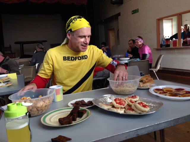 The Steppingly Step is a very versatile trail run or walk covering 12, 18 or 26.2 miles (you choose) and goes through Sharpenhoe, Harlington, Westoning, Flitwick, Ampthill, and Greenfield (I think that's all of them!) A beautiful sunny but blustery day meant that Noel, Bec and I had a fairly grippy trail which was great, especially as the first few miles took us up Sharpenhoe Clappers, a series of serious steps straight up a massive hill, this was a marathon with a difference. We had been instructed to arrive with a cup and a compass (thanks to Alex Rothwell for lending me his!) which meant it was the first time I had run with a backpack, almost straight away I was trying to adjust it to stop it rubbing on my neck, I never really got it right so something I need to work on there. The scenery was stunning on most of the route, and we were running at a 'chatting' pace which isn't always a good thing when you are supposed to be reading a map! The first checkpoint at 5 miles was a sign of things to come, a group of lovely ladies serving up tuna wraps, cake (of course) tea and squash and rice pudding and peaches. It was tempting to dig in but then you remember you are supposed to be running - I think this kind of food was more aimed at walkers - we did have a little go though. As we got to each checkpoint the food got better and better, malt loaf, crisps, sandwiches, it was like a tea party, lots of jelly too. Anyway, we picked up the pace a bit on the second half and were soon at the new Centre Parc perimeter, a huge site and our first look at it, a few lodges and some cranes so far, it looks far from ready. Soon we were at the final checkpoint and only three miles to go, all flat so we pushed it a bit harder and maintained a reasonable pace until I tripped and fell at about 25 miles, on the mud though so the only damage was to my pride! Arriving back at Barton Village Hall we were welcomed with yet more food, bean on toast, cake, mince pies and custard, and a wealth of other goodies (all I wanted was a cup of tea by this time!!) A pretty tough run rewarded with some stunning views, fabulous food, lovely people and great company. Highly recommended at just £6 to enter (I don't know how they do it!) Garmin running time 5,20 LDWA time 5,55 (included stops) Sarah W |