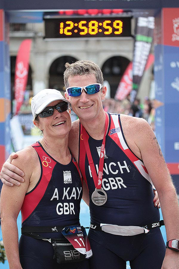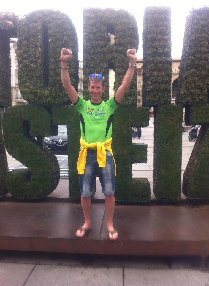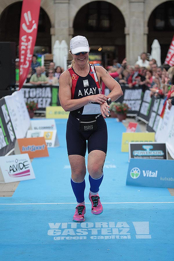 VITORIA-GASTEIZ - IRON TRIATHLON We arrived in Vitoria, northern Spain on Friday morning after flying into Bilbao the previous evening and staying there as we were not too sure on the bus times – it was an hour’s coach ride through some pretty countryside. After unpacking bags, bikes and kit we went to the Expo to collect our numbers and look at the old town square where the run goes through twice on each lap. The English briefing was on Saturday where we met 2 other Brits – Sam from Biggleswade and Mark from the Brecon’s. They told us the bike course was flattish – ha! It wasn’t but they are used to the hills of Wales. We dropped our run bags at T2 in town then loaded our bikes into a van and we had a coach ride to T1 – the lake was calm and very scenic all round, the nerves were beginning to kick in. Back into town, looking for a restaurant was like looking for a needle in a hay stack – lots and lots of bars and cafes but where could we eat?? We found, out the back of a bar, a restaurant – yes – but the menu was all in Spanish – we looked on the table behind us and told the waiter we want what they are eating. Race day was here – up at 4.30am, porridge and a cuppa – wish I’d finished all my porridge when I was half way round the swim. On the coach again and off to T1, the sun was coming up and it was forecast to be a hot day. We were almost first in transition and were first in the loo. We put our bags in the lorries and everyone was instructed to stand by their bikes – no idea what was happening – then each group was lead onto the beach start of the swim being clapped by the other competitors – a very moving experience and this was just the start! There were 4 starts in the swim, Pros, all ladies (phew), half distance men then the Iron men. I started at the back with my own space and no panicking. The lake was warm and shallow, 2 laps and then off on the bike. The course was a little loop then 2 big loops and finishing in Vitoria, it was a rolling course with the odd hill and quite technical going round the reservoir. The aid stations were well manned and we used their Infisport – just as well we both have good stomachs to cope with new gels and bars. On coming into Vitoria on a main road we could get a good speed up and zipped through the town into T2, bikes were taken from us and my legs decided to throw a wobble as I was putting my running shoes on. I had a serious talk to them – so off we went – marathon next. The crowds were amazing all round the town and there was only a short bit on the run to hide from them!! The run went here and there and all round, very interesting sights and even posh loos! I was waiting for Gary to overtake me – we had worked it out that it should be around 4.5 to 5 miles but I had run the first lap 6miles when I saw him coming through the park – he was on a mission and looked amazing, fresh and raring to go. He caught me up, had a quick chat and off he went – made running look so easy. I was determined that he wouldn’t lap me and he shouted encouragement at me every time we passed. The last lap came round and I was determined to finish in style – it became quite emotional as I got nearer and the crowds were truly fantastic. Into the last loop and the finishing funnel where I could see Gary waiting at the end. A little hop on the finish line and sub 13 hours! Yes result!!