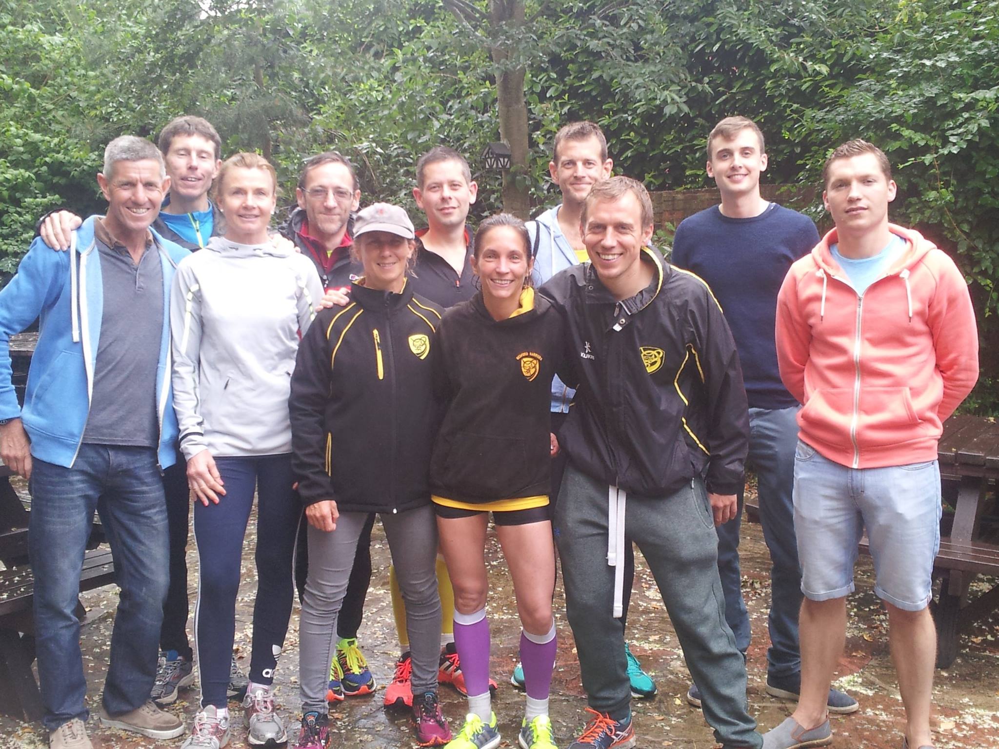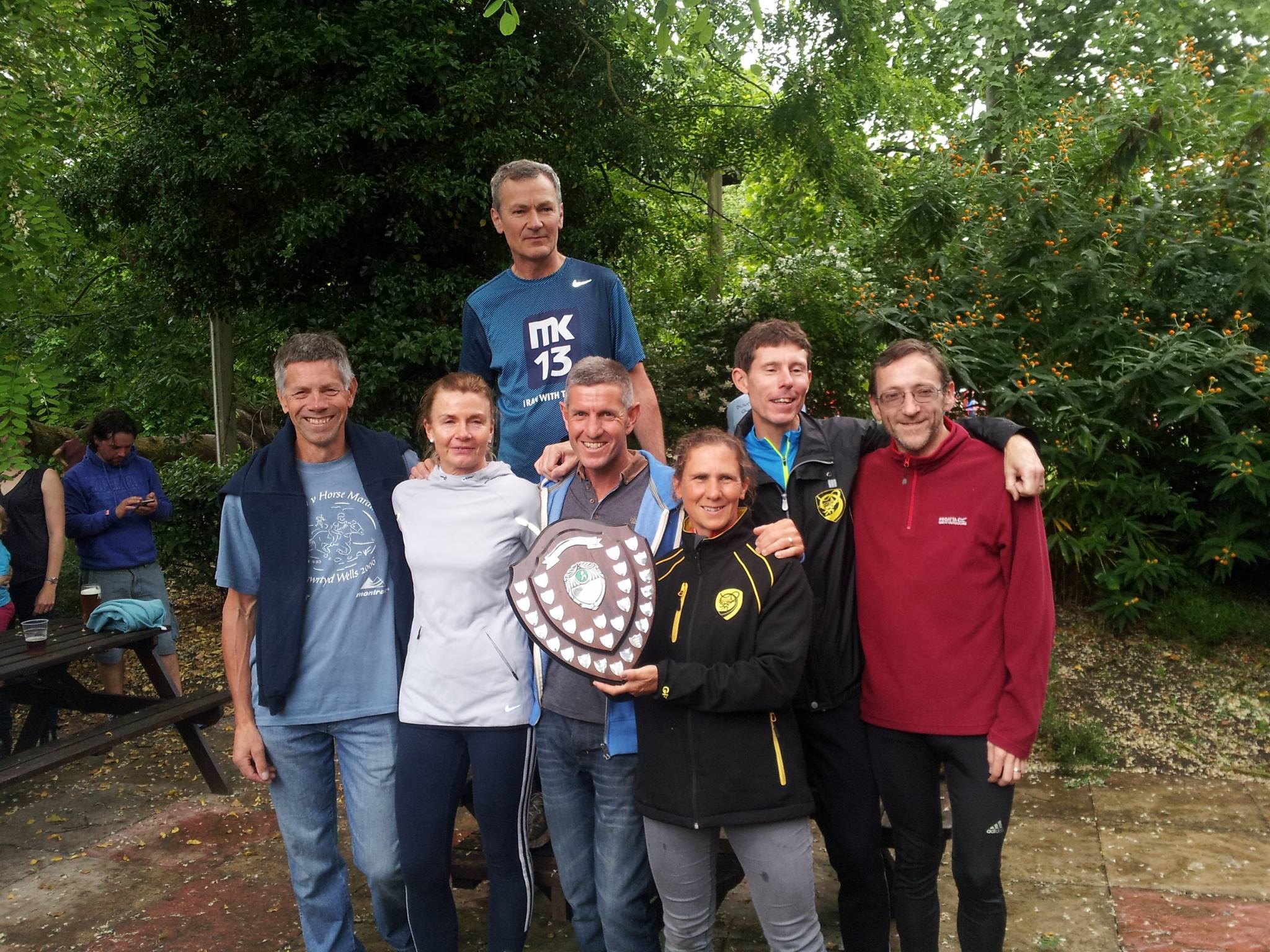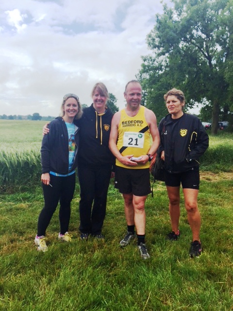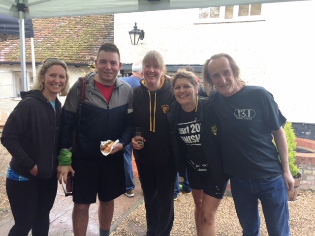 sat 20th June With only ten days or so to find five other runners and get a plan formulated this was going to be a tough one, I was also at Royal Ascot the day before so had to make sure I was back home in good time. I'd heard of this event but never taken part but was very interested. It's six legs of a 34 mile section of the Greensands Ridge (which runs from Leighton Buzzard to Gamlingay) The legs vary from 3.9 miles to 9.1 miles. Using the power of Facebook I had a team of willing volunteers within an hour and we began planning. During the week leading up to the run I was grateful to have some running pals host a recce, some others also got the time to practice run their legs too. Race day came round quickly and Larissa Clarke was soon on the start line at Leighton Buzzard, dibber at the ready. It was the first time we had seen a dibber, I gather these are common on navigation events to record the time. Larissa set off and we dashed to the second changeover point at Stockgrove with Tina Delaney at the ready. Larissa made good time and passed the dibber to Tina to complete leg two which was Stockgrove to Woburn, Larissa also ran Tina's leg with her (nuts!) whilst Tina's husband and I travelled on to leg three where I would run. In the meantime I was taking pictures and updating our team with progress. Tina came hurtling down a hill towards me and all too soon I was off. Relying on memory I was a little worried about getting lost but as I ran i remembered landmarks and followed the ridgeway signs. Leg three was 9.1 miles from Woburn to Millbrook, it was a stunning run, lots to see and very easy to get off course - I had to stop a couple of times to make sure I was taking the right route but it all went smoothly and I was soon running the steep descent into Millbrook and handing over to Steve Ball who was running the Millbrook to Deadmans Hill leg. The rain was heavy when Steve took off so we took shelter in a nearby pub (needs must and all that) Richard Watson was our next runner and his leg began in a field Deadmans Hill. We waited for the changeover with Steve and then after a few vehicle logistics we arrived at the final changeover point, Deadmans Cross, where Kelvin would run the final 4.7 miles into Northill where we would end the race at the Crown pub with a nice beer and BBQ. We waited and clapped other runners on (you can also run this as a solo) we waited some more. We worked out after a while that Kelvin had almost certainly gone wrong. We waited some more, we called but reception was an issue, so we waited some more...and then some more. Finally, Kelvin appeared in the distance and we were all so relieved he was ok, it soo transpired that he had indeed gone wrong to the tune of over three miles! Steve also lost a mile on his leg so overall we didn't do very well time wise but we all had a brilliant run and a fab day out. Big thanks to Mr Delaney for transport help, to Larissa for transport help, and to all of the team who came and ran with such short notice. Next year we would like another try and there's plenty of time to do practice runs. I would heartily recommend this race to anyone wanting to try a team event, it's a great atmosphere and there's beer and burgers at the end! Happy team running Sarah