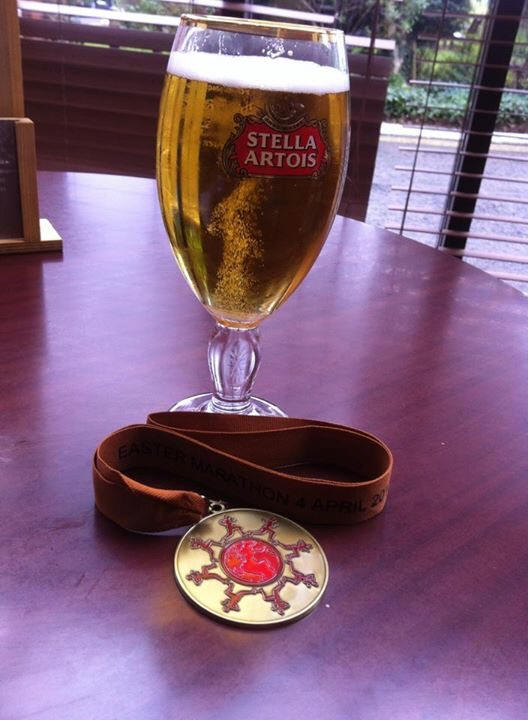 A Saturday Marathon! Wedding cake ponies and the odd lake.. last Sunday I booked the 'madeyarun' Easter Marathon which is in Northampton, just of the A428. I went with serial marathon stalwart Rebecca Fleckney and we arrived at 8am, nice and early. I was calm, I was ready for this. Rebecca brought along wedding cake which I hoovered up pre race, what a brilliant pre race fuel! Conditions were blustery and threatening rain. The race is organised out of the hotel so we had ample parking and a conference room to ditch our luggage in, brill! The start was just behind the hotel, and there was an aid station in the car park. Perfect! It's nice to not have to carry things as you are always just a few miles from food and drink. Oooh it was wonderfully stocked, Jaffa cakes, midget gems, nuts sweet and coke... Brilliant. There were also free gels, cliff bars and a myriad of other goodies available. The race began, there must have been 100 of us, many from the 100marathon club. The first few mile felt a bit clunky, they always do but I concentrated on the scenery, we ran on path next to the main road for a bit and then went into a small green area with some trail, a little loop here and we were back up into open grassland by the lakes, it was pretty exposed here and I was glad of sleeves. The first lap was over pretty fast and I was feeling good, over four miles done and it seemed to pass quite quick, spurred on I didn't stop for a drink, just looped and began the second lap, deciding I would stop every two- my strategy was forming as I ran, my garmin was turned inwards, I wasn't interested in time. This was a mission between me and my head, all I wanted to do was complete it. Many positive thoughts flowed, 'six laps, you've done one, you are on the second, the next will be the third and that's half way already' part of the course meant you saw the lead runners, it was brilliant to see them tanking round and most waved and smiled. There were ponies walking about and we had to run round them, squirrels, robins and twitchers galore, even the odd crane. There were a few lakes, not sure how many, I kind of remember the wonky lamppost, the bench, the gat 'passed it four times only two to go' Soon I was on the last lap, it wasn't glorious if fast but it was mine, I felt good to the very last step/shuffle and managed an ok 4.13. We then hit the hotel bar and a pint of boddingtons went down very nicely thank you very much. A recommended marathon if you like laps and lakes and up that kind of thing. The medal was lovely and we got a box of maltesers too, sorry no pictures but they seem to have gone....👀 Happy running