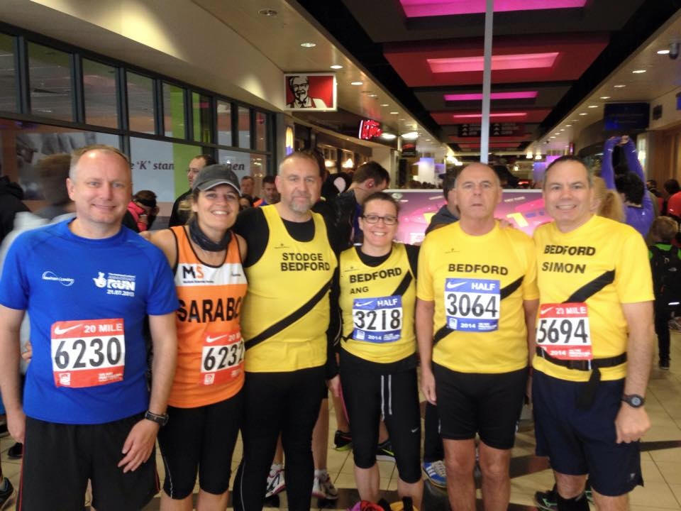 Another Sunday another 'entry on the day race' Milton Keynes inaugural 20 miler As my daughter is expecting imminently and I'm on hand to assist when the big day arrives, I'm currently not pre booking any races. This is leading me to some very interesting weekends. I discovered yesterday that the MK Festival of running was on and you could indeed enter on the day, the choices were 5k, 10k, half Mara and for the first time they had introduced a 20 miler. So of course that was the one for me. It was a sunny start to this morning but cloudy upon arrival. I thought I'd try out my charity vest for VLM so I could check for any potential wardrobe malfunctions. Met up with a few harriers for a quick photo opp and before we knew it we were off. I set of a bit fast, the first five miles all under 8 mins, woops... I slowed a little and tried to enjoy the surroundings, it wasn't too bad, lots of ups and downs as we went under bridges, friendly locals with jelly babies and plentiful water stations. Spotted quite a few running friends and at about 11 miles we joined up with the half marathon runners, a nice touch and not too crowded. Upon reaching 14 miles I began slowing and felt tired, took a gel at 15 and to be honest the last 5 weren't easy, and then there's a nice big hill half a mile before the end. Some of you will know about this hill, it's a real sting in the tail. I pushed on as I could see a sub 3 hr time was possible, I'm now the owner of a shiny new PB 2.56.17 7th lady in my age category too- been ages since I had one! and a good sized medal. Glad I took it easy at park run on Saturday :) Sarah |