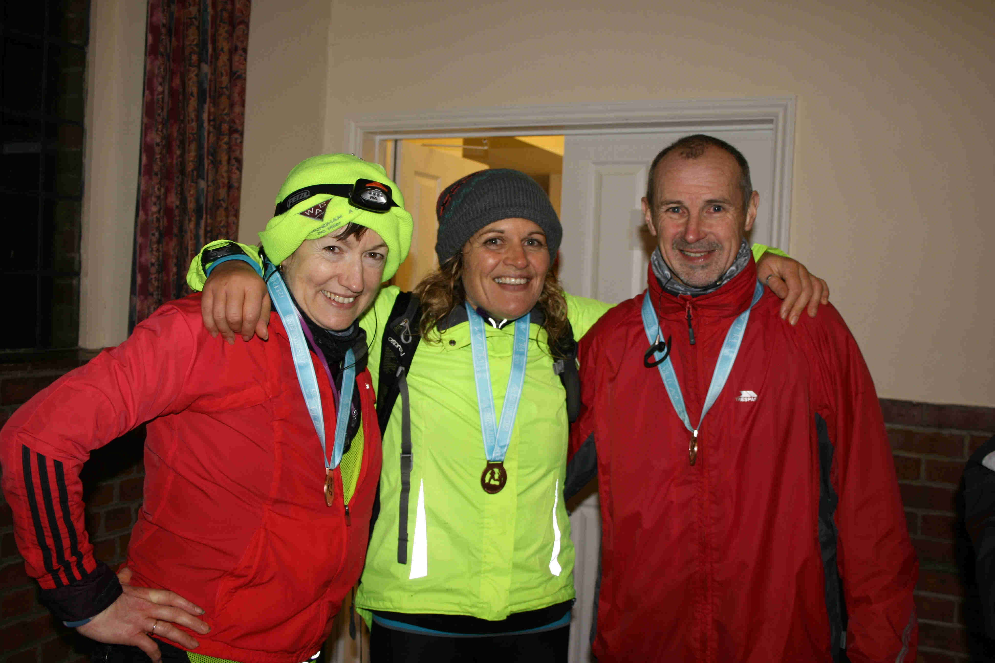 Peddars Way is a roman road that stretches from Thetford all the way to the beach at Hunstanton, the race itself is a total of 48 miles and its unmanned and navigational but mainly straight so not that difficult, even for me. I ran the inaugural event last year, just 50 of us and it was a challenge then. This year it was open to 100 runners, with a t-shirt and a fab new medal on offer and they had tweaked it a bit to make it better. Intrigued I entered at the last minute (naturally forgetting how hard it was last year and that it was days before I could walk properly again yet alone run...why do we do that?) I stayed in a great little b&b in Kings Lynn the night before and woke early. We were to meet at 6am at Hunstanton, park our cars and board the bus provided back to the start at Thetford. It was nice to see a few familiar faces and we chatted quietly while some snoozed. Soon we were at the start which was in a pretty forest setting at Knettishall Heath, a light snowfall had begun. I went off fairly fast and after about 10k settled into a slower pace. At 12 miles we reached the first checkpoint, my mind wasn't happy, lots of negative thoughts, in fact I was trying to work out why I was even there running such a great distance, I tried to push these thoughts away but it was difficult. As we pushed on towards the next checkpoint at Castle Acre the sky began to look heavy with snow. The wind has also picked up and I was contemplating quitting, my time was slow, I couldn't imagine I was going to get through this within the 12 hour cutoff and a few other million reasons. I'd run through all the pros and cons in my mind and I just wanted to be done. Telling myself that if I reached Castle Acre it was 27 miles and therefore an ultra, sod the medal, I'd even written the DNF blog in my head. As i arrived at the checkpoint it had begun to snow heavily and I approached a marshal and told her I was quitting. She took my number and I entered the room where the aid station was (in a pub) hot soup in hand I was shocked to see so many runners, it wasn't just me making a slow time, there were frozen individuals everywhere, young chaps who you really wouldn't expect to see at this distance so late in the game. After a quick chat with the race organiser Kevin, he assured me that even if I walked fast I'd almost certainly make the cut off. I had some warmer kit in my backpack so changed into that, ate some more food and had a coffee and retracted my race cancellation. A young girl called Mel offered to accompany me for the rest of the run, so we set off. Mel was wearing shorts and it was snowing, she was fine despite the bright pink legs. We set off with a gentle jog, as we progressed further the weather deteriorated at an alarming rate, it was snowing heavily, high winds and very difficult wet and uneven terrain. We tried hard to keep each other motivated but it was difficult. Mel's legs were by now bright pink, I was wondering what on earth I was even doing there, it was desolate and we were glad we had each other. My phone battery had long since died and the backup device I had bought had also failed. As we approached the last checkpoint at mile 35 I gratefully accepted a cup of tea. My fingers wouldn't work, gloves were soaked and despite 4 layers I was cold. Mel's partner was there with dry kit for her so I waited while she changed. The longer I waited the colder I got. Finally she appeared but it wasn't good, she was shaking violently and her face was ghostly pale. The marshals stopped her and sat her in a car with a hot drink, refusing to let her go on. She was visibly upset, we had come so far, with only 12 miles (!?!) left this made me even more determined. I set off alone but soon saw a couple of fast walkers in the distance, I ran as fast as I could to catch them desperately not wanting to spend time alone. Turns out this was the best decision I had made all day. Tina and Roger had buddied up earlier and I asked to join them, Tina explained they had a 'fast walk' strategy and I was welcome if I could keep up. At this point anything was fine so I fell into pace to grind out the last few miles. The snow turned to hail, the wind picked up speed across the barren fenland, I fought more negative feelings and tried to have warm thoughts. I caught myself shivering and my breathing was erratic, I think at this point I was heading into a dangerous place, recognising this I flapped my arms and increased my pace. I couldn't afford to get my core cold. We marched on into the slowly darkening distance. Soon we needed head torches which meant stopping to find them, this was a huge effort which carried a risk of us getting even colder. My head torch was nowhere to be seen, thank heavens Rogers was super powerful. On we went chatting sometimes and long but comfortable silences at others. Tina's garmin died, we were guessing how far we had left to go, Roger produced jelly babies and we were eternally grateful. Those last 12 miles felt like a lifetime. Finally we got to the end of a very muddy descent arriving at Beach Road, there were cheers as we knew it was just a mile or so to go. Arriving on Hunstanton beach we were instructed to take a page from a book hanging there (by way of proving you had reached the very end of Peddars Way) and then proceed to the village hall. Once at the hall we were greeted by an army of marshals busy heating up chilli, making tea and handing out medals. Wow, we did it. I can honestly say that this was the toughest event yet in my short running career and not one I would want to repeat. Looking back I wasn't well enough equipped or organised for such brutal conditions. (My head torch was in my bag all along but we were so tired and confused we didn't spot it) I have since heard that the potential winner pulled out of the race around a mile before the end as he was suffering so badly and that the drop out rate was 20/89. Much respect to everyone that gave it a go, to the marshals w