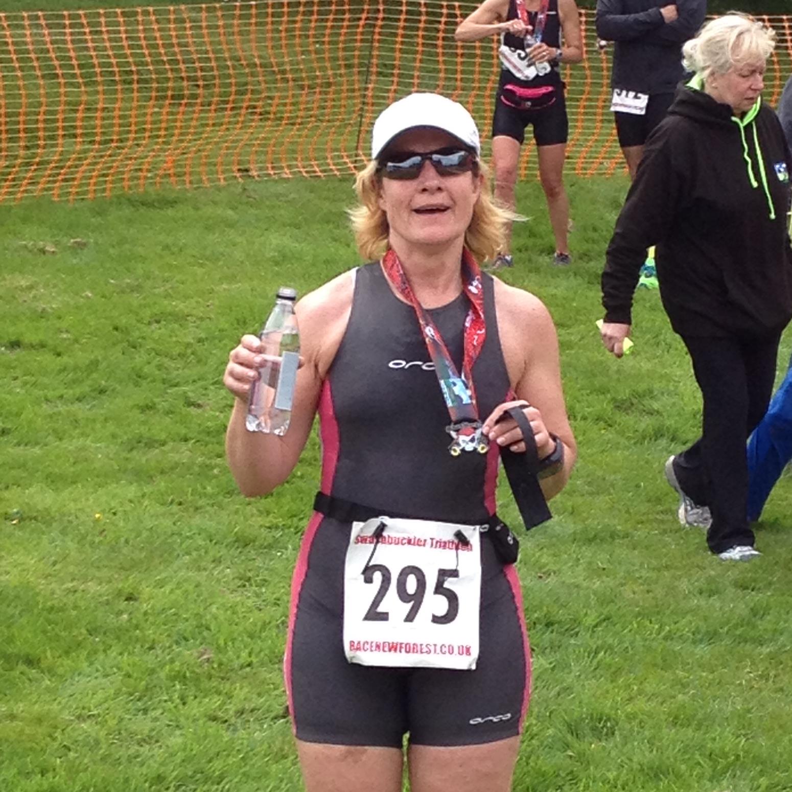 We arrived late Friday night in the New Forest after having to do a car change, a well deserved lie in Saturday morning and then off to register. It was a much smaller field than previous years but the same stunning setting. As you can imagine the water temperature was the main topic for discussion. They had shortened the lap and were ready to call 1,2 or 3 laps depending on the temperatures (air and water) in the morning. We were allowed to wear bootees but gloves had to be declared, didn’t use either! If you only wanted to swim 1 lap then this was allowed but again had to be declared. That was very reassuring and showed concern for us athletes. Back home and race prep began and stopped! Gary put his race wheels on and had a broken spoke - great and that then buckled his wheel! Wasn’t a happy bunny! So change back to 'travel' wheels. Early to bed 8.30! Alarm went off at 3.30am a few more snoozes and then mad panic as the race started at 6am!! We arrived at the race, racked bikes, wet suits on and off to the start - no time to faff or get nervous at all - good plan for next race. The swim was 2 laps and a balmy 12.5 degrees (at the bank!) more like 10.5 out in the deep. The tide was coming in so easy out and swim hard back in. Swim done and having learnt a lesson from getting cold a few years back - We took time to dry off and put on an extra layer, well I did Gary decided just his tri-suit! Bike course was through the lovely New Forest and so scenic. My legs were not too happy doing it and Gary went sailing past me. I had to deal with my chain coming off and then my very first puncture in a race. Sorted but lost lots of time. The run was 2 laps of 7 miles through the country lanes and wood. It was great to run and all the Marshalls were brilliant and so supportive. I finished 2nd Super Vet and qualified for next years ITU’s but unfortunately Gary missed out on ETU’s by 6 mins!! (Oh to be an older lady!) We can really recommend this fantastic, well organised, cheap entry race and we'll be back again next year!