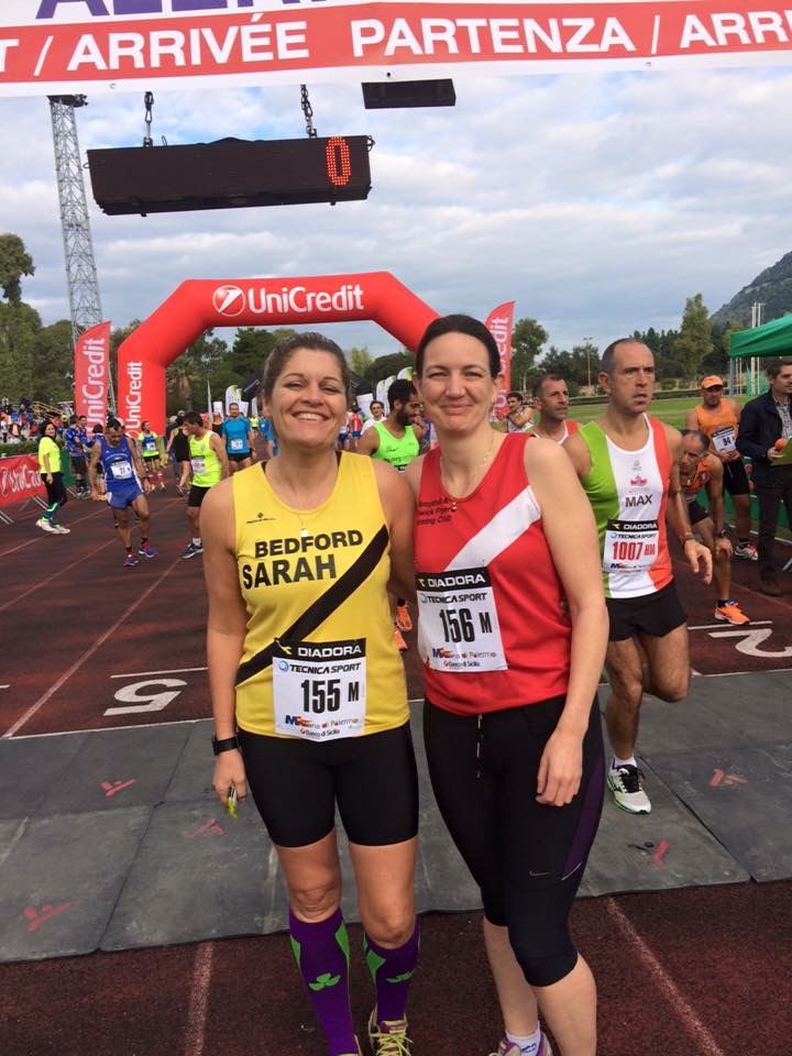 were to run the marathon, the rest being half-marathon runners. Feeling a bit sweaty post park run we headed back to the hotel to freshen up. A few hours and a shower later we wandered down to the port for some very agreeable wine and pasta followed by a Local delicacy 'cannoli' which was a pastry filled with I think almond cream and a couple of strategically placed cherries! Back to the hotel we hit the prosecco which is always a great idea before a marathon. An early night followed and soon enough race day was upon us. At breakfast we met a fellow runner from Austria who kindly offered us a ride to the start in his taxi, much nervous chatter ensued and we were soon back at the stadium. Excitement built and we were soon on the start line. I do wish I hadn't looked at the course, as we crossed the line all I could think about was the journey back to the finish line at the halfway point and back out again.... The route was gradually downhill for miles and miles, almost enjoyable and the odd corner contained supporting locals. Many runners had the French colours painted on their faces and I often heard cries of 'viva la France!' At three miles in I was drenched and knew that this wasn't normal, I figured I must have had a touch of man flu and hoped it wasn't going to hamper my progress. At 20k I felt a bit yuk and the idea of just doing the half became more and more attractive... At 21 k I had made my mind up and as I ran into the stadium I began to unpin my number and look for a race official. I was drawn to the water station and had three large cups of electrolyte drink and watched as the half marathon runners finished their races....I was feeling guilty and a bit rubbish and began to rethink my decision, just then a man who must have been 75 plodded past me and on towards the full marathon route. Dammit, how could I not continue? If he can do it I sure as hell could... Number in hand I restarted my garmin and slowly trotted out of the stadium and onward. I have to say the second half went better than the first, I chatted to some runners and we spent 5k running by the sea which was nice. The last 10k was a pretty long hard mainly uphill slog and as I crossed the finish line my first thought was 'no more untrained marathons' 4.23 of very hard work, 4th in age cat. The winning runner did 2.44 which kind of tells you how much hard work this was. I hobbled around near the start and cheered Bec in, she did a wonderful sprint finish and we collected medals and goody bags. Taking the bus back to the hotel we decided on an early night. Monday was pretty good wandering the streets of Palermo in the sunshine, exploring the many piazzas and trying new food and drink. I particularly liked the affogato and garlic chilli pasta. Sicily didn't cease to impress and amaze, from the stunning architecture, the crazy traffic, the wonderful fresh food and the friendly locals it really is a unique destination that's well worth a visit, even better with a good friend! As I write we are on the bus to the airport, there has been an accident and we are stuck...currently the 45 min journey has taken 90mins. I wonder if we will catch our flight? Part two... And here I am a day later... We missed the flight due to a huge lorry fire, I do hope there weren't any casualties. Bec and I got on the case enlisting help from her brother and my daughter. By the time we arrived at the airport we had accommodation booked and new flights for the following day. The accommodation was amazing, a small b&b in a nearby town called Cinisi with a little in-house wine bar. Arriving we soon crashed and were up for breakfast bright and early for our epic day of travel... 8am leave for Palermo airport, 10 am fly from Palermo to Rome, have lunch, 1.30 fly from Rome to Heathrow. This is where things got scary. As we came in to land I was gazing out of the window at rain sodden Tarmac and all of a sudden the plane sharply pulled straight back up with a huge whine of the engines, up we travelled until well out of the runway space. Straight away I assumed it was the strong winds as we had been suffering from turbulence all the way in. Imagine our total surprise (and shock!) when the captain informed us he had approached the runway only to find there was another plane In the way! A cold shiver ran down my spine. We were up in the air for what seemed like ages before a second attempt was made and eventually we landed safely, it felt so damn good to step onto terra firma. Arriving a day late at the wrong airport set the scene for the next part of the journey. Thankfully Becs other half collected us from Heathrow and dropped us at Stansted, during the rush hour, in a storm... As you can imagine this wasn't a speedy journey but all the same the help was very welcome. After some time we arrived at Stansted and tried to leave the car park....over staying the short term was to cost £200!! This was about to be the final end of a long and expensive straw when a very nice man informed us over the intercom that he was opening the gate and letting us out! Fantastic . We hit the road with renewed vigour for about five minutes and then realised the strength of the storm, wow this was heavy going. Becs car was taking some controlling. The girl did good and kept calm despite the storm trying to whip the steering from her arms. At one point the car was hit by flying debris and we both yelped. Finally today's journey ended around 13 hours from when it began, it seemed that everything tried to conspire against us.....oh yes, and we ran a marathon... Sarah |